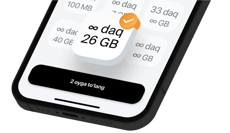 Istagan cheksiz opsiyalar, masalan YouTube, Instagram yoki SMS — atigi 1 oyga to'laysiz va 2 oyni sovg'aga olasiz.